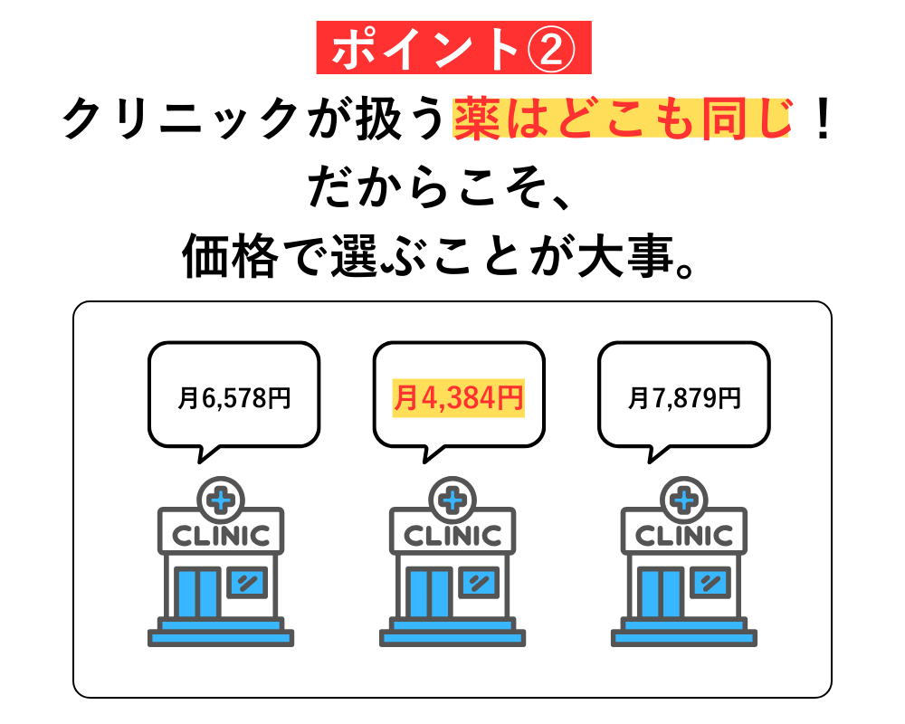 AGA治療は効果が出るまでに3ヶ月〜半年かかりますので、月々の料金が高いクリニックを選んでしまうと、長期でみた場合に大金を損してしまいます…。